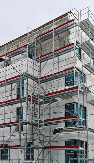 Ogni ponteggio per facciate soddisfa i requisiti di legge in termini di resistenza e stabilità. Offriamo una gamma completa di ponteggi per l'edilizia, adattandone il design alle esigenze specifiche di ogni progetto.